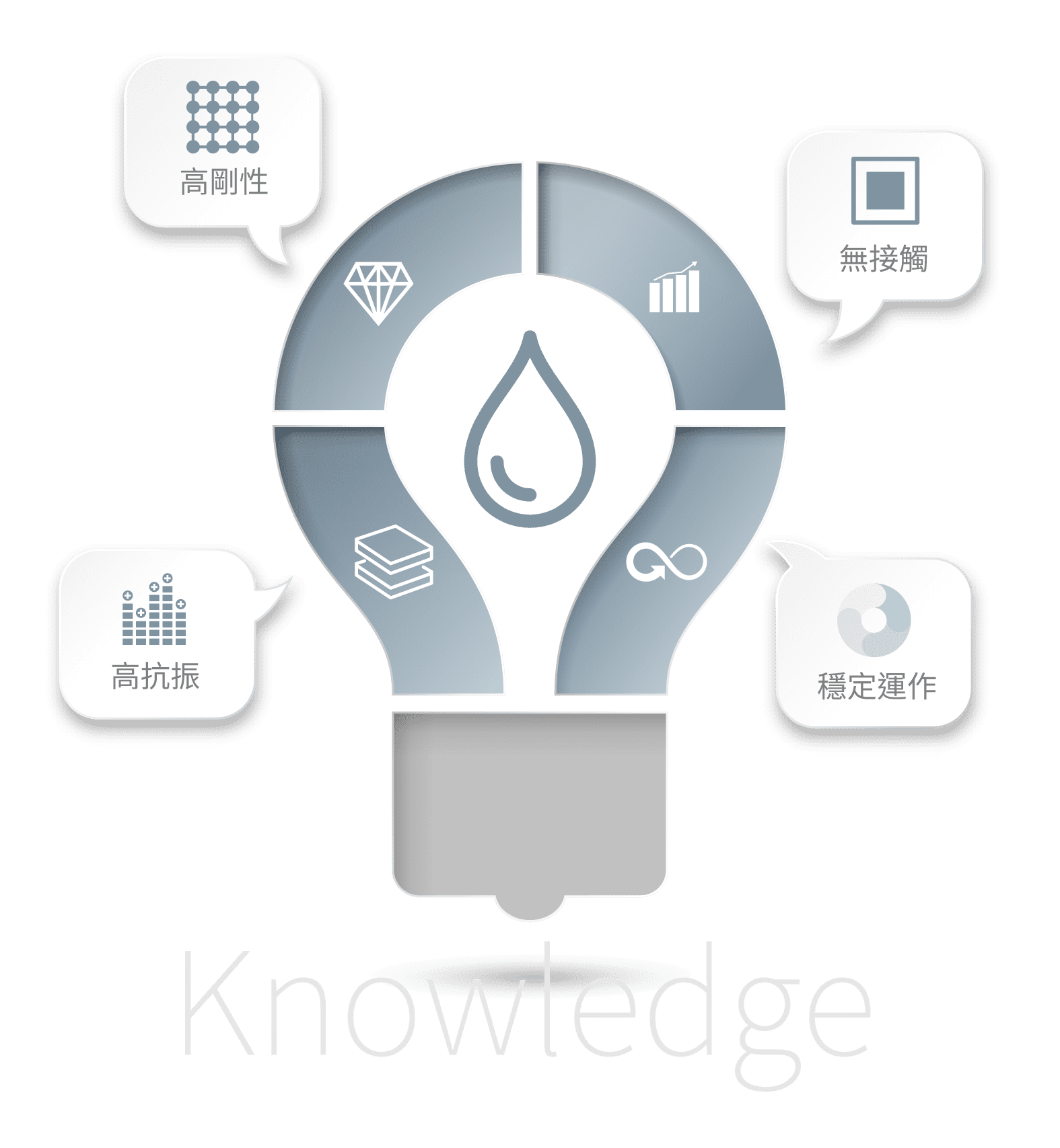 由於全封閉液靜壓油膜特性,其具有高剛性、高抗振、超低摩擦力之特性,可在極大負載下仍可穩定運作。