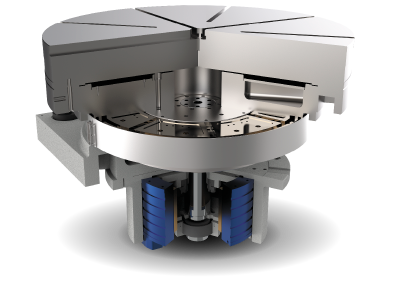 採用靜壓軸承支撐軸向與徑向,具高抗振性,高剛性,高迴轉精度,可承載高重量。