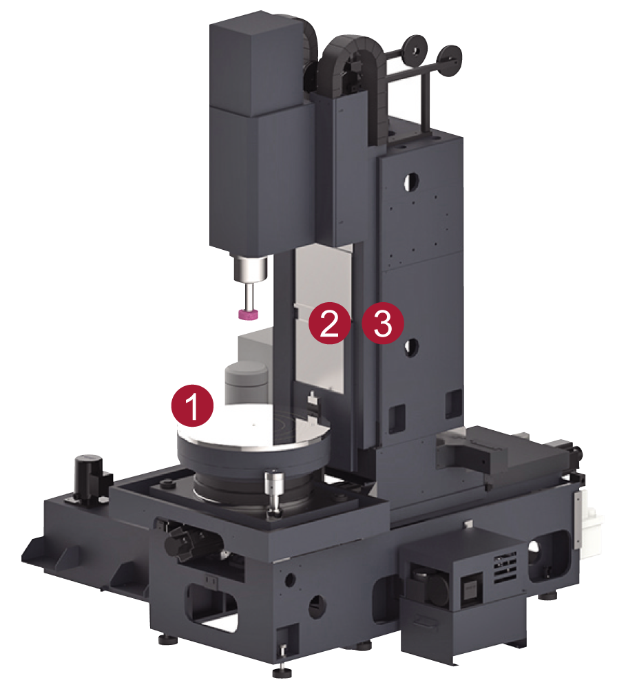 此系列機種皆標準配置HRT液靜壓旋轉工作台,可承載重負荷工件,運轉平穩低振動,對於幾何平面度、垂直度與同心度有優良的表現。