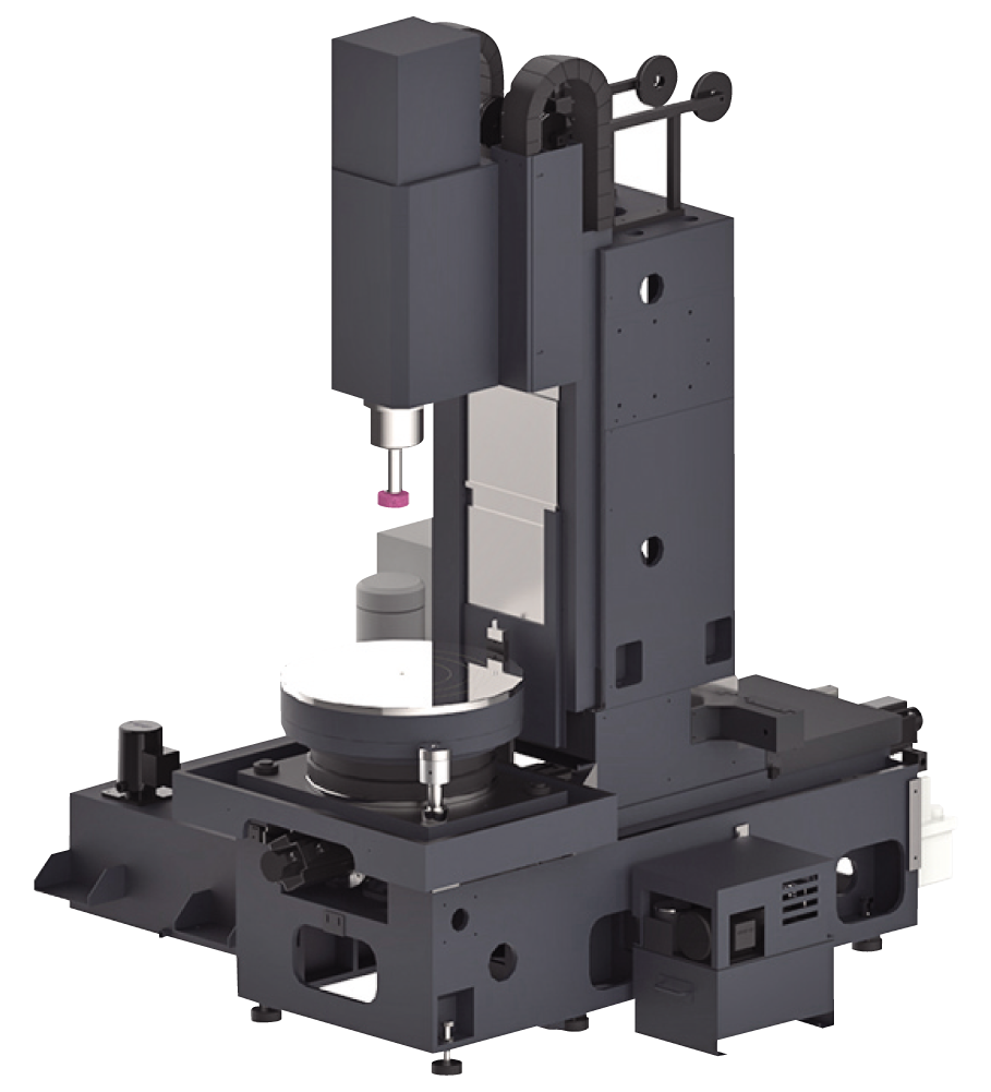 ・C軸旋轉工作台採用液靜壓軸承,此軸承系統可平穩運動,加工迴轉精度最高可達< 1 μm,並可承載高重量工件。
